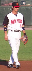 The biggest surprise, the person who I never thought I’d see in Rochester again: Danny Valencia. He might not have been a big prospect coming up like some other players, and he never really had much pop, but he always hit in the .280s and .290s and often was making good defensive plays (although statistically he was average at best). Then, as sometimes happens with ballplayers, he appeared to break out when he was brought up in 2010: .311 BA, .799 OPs, 7 HRs and third place in Rookie of the Year voting. He’s never been able to recapture his 2010 MLB form, though. It’s doubtful he’ll end up back up unless there are injuries or he really starts knocking the cover off the ball. Interestingly, he hits against lefties very well, so there no doubt is a spot for him somewhere in the majors. The question is whether that place is with the Twins.