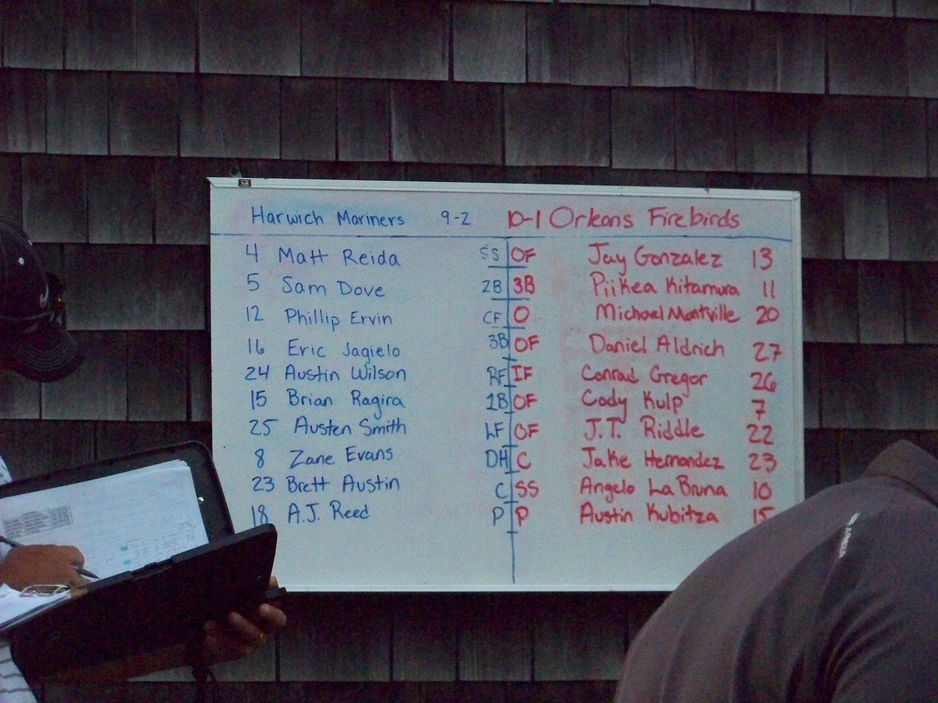 Whitehouse Field in Harwich was packed. It’s a very nice field, probably on the level of a good lower-division college field or a older stadium in a very low short-season professional league. Two sets of big stands, some nice lights, what looked like a small press box, and a electronic scoreboard.