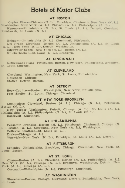 Also in there, however, were more strange things. Some of them, for example, had a listing of where the visiting teams stayed. Now, even today you can often figure out where visiting teams stay in town due to ads that might say “Official Hotel of the Boston Red Sox” or something similar, to the point where most baseball players have aliases that they check in with that don’t reveal their fame (although Rickey Henderson, ever the master of disguise, went by the alias of “Richard Pryor”)