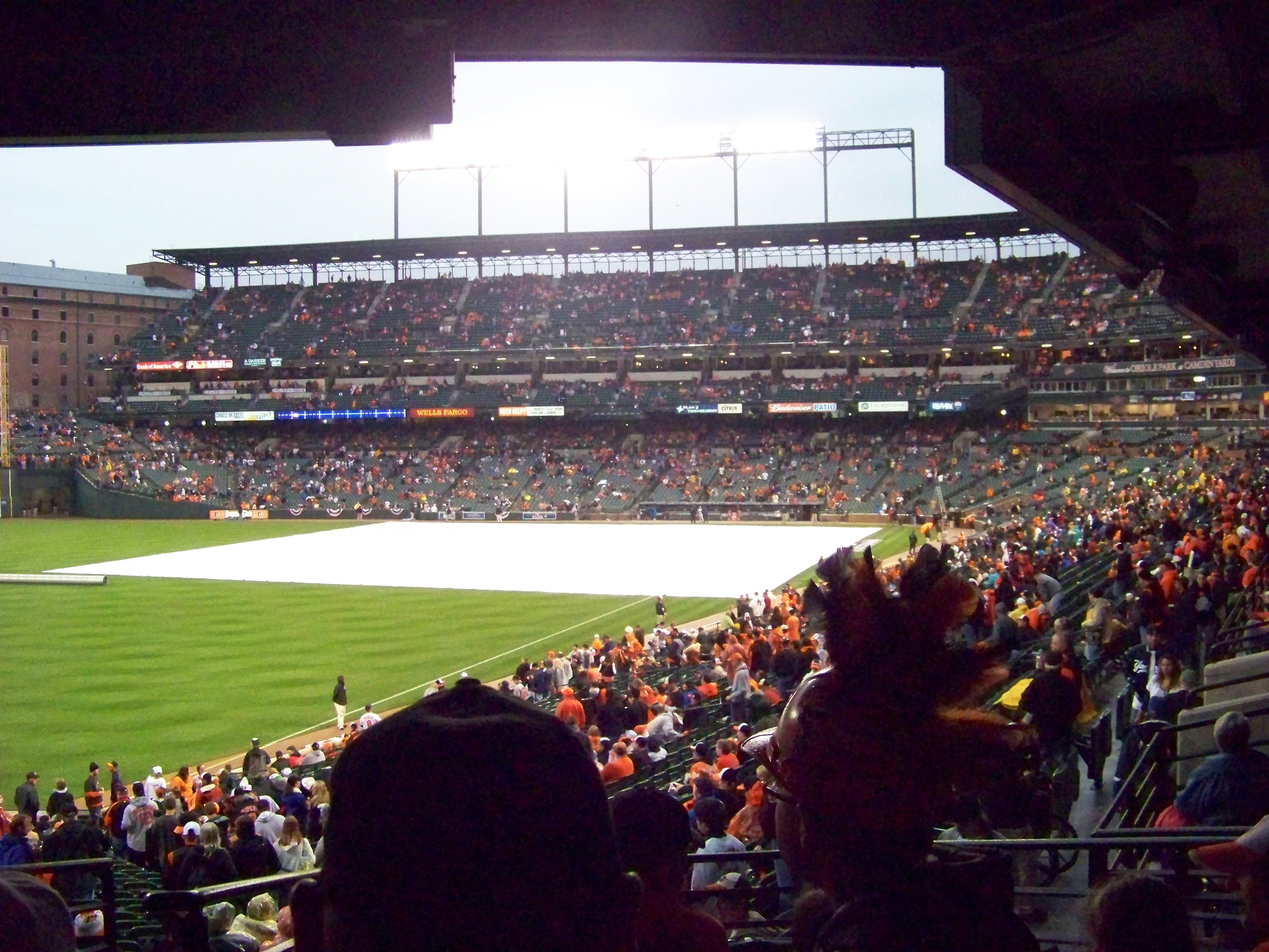 Anyway, it was over two hours before the (scheduled) game time, and although the sky looked kind of ugly, it wasn’t raining when I got to my seat: