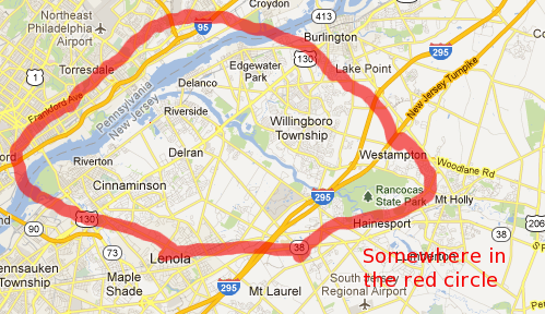 That’s a big area, and I wasn’t able to narrow it down any more than that (although I will admit I drew that circle too big). I quit trying when I realized points A and B.