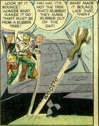 So, what’s so special about this comic? Well, nothing much, really, other than the fact that it, as I’ve mentioned earlier, has some shocking similarities with The Natural (magic bat) and Absent-Minded Professor/Flubber (bouncy stuff).