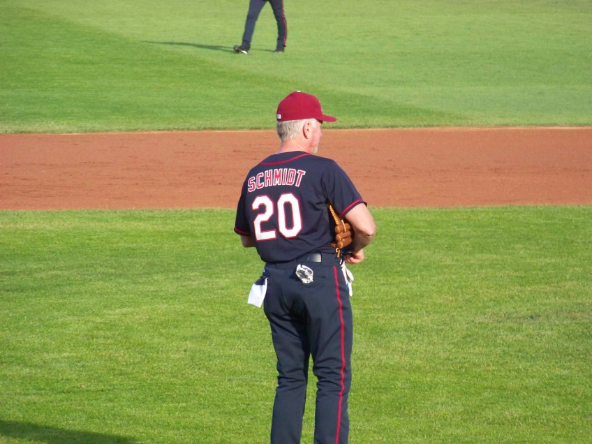 100_4974 Published May 19, 2013 at 3264 × 2448 in A Day With Legends: The 2013 Pepsi Max Field of Dreams Game Schmidt in the field.