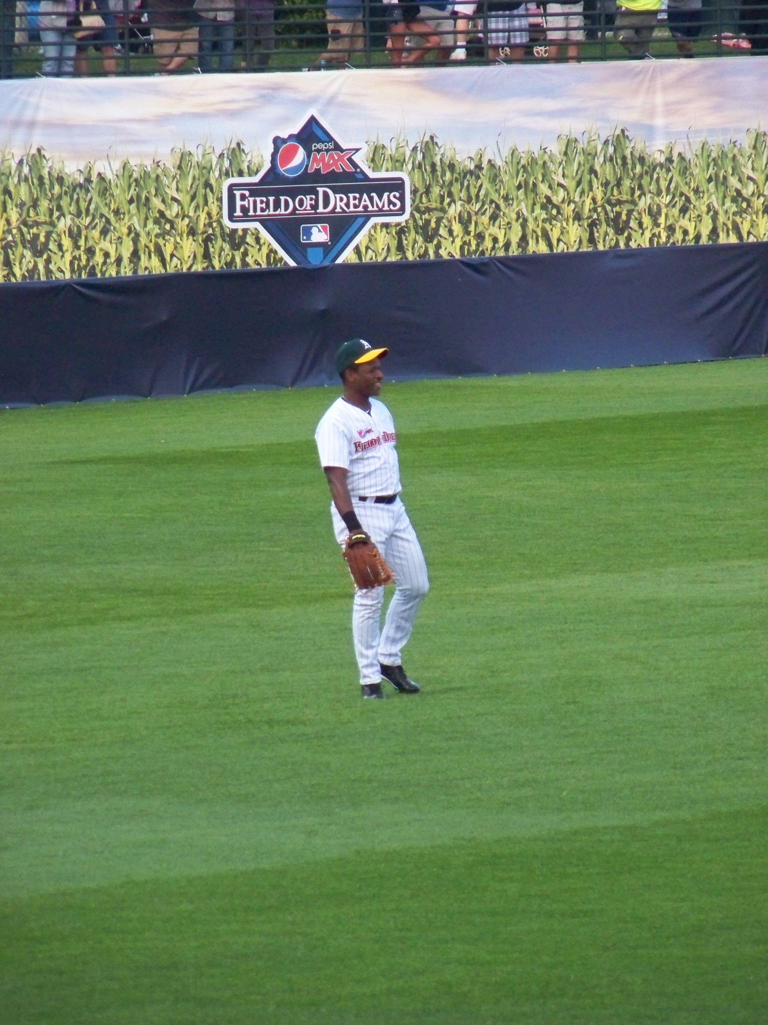 100_4990 Published May 19, 2013 at 2448 × 3264 in A Day With Legends: The 2013 Pepsi Max Field of Dreams Game Rickey in the outfield.