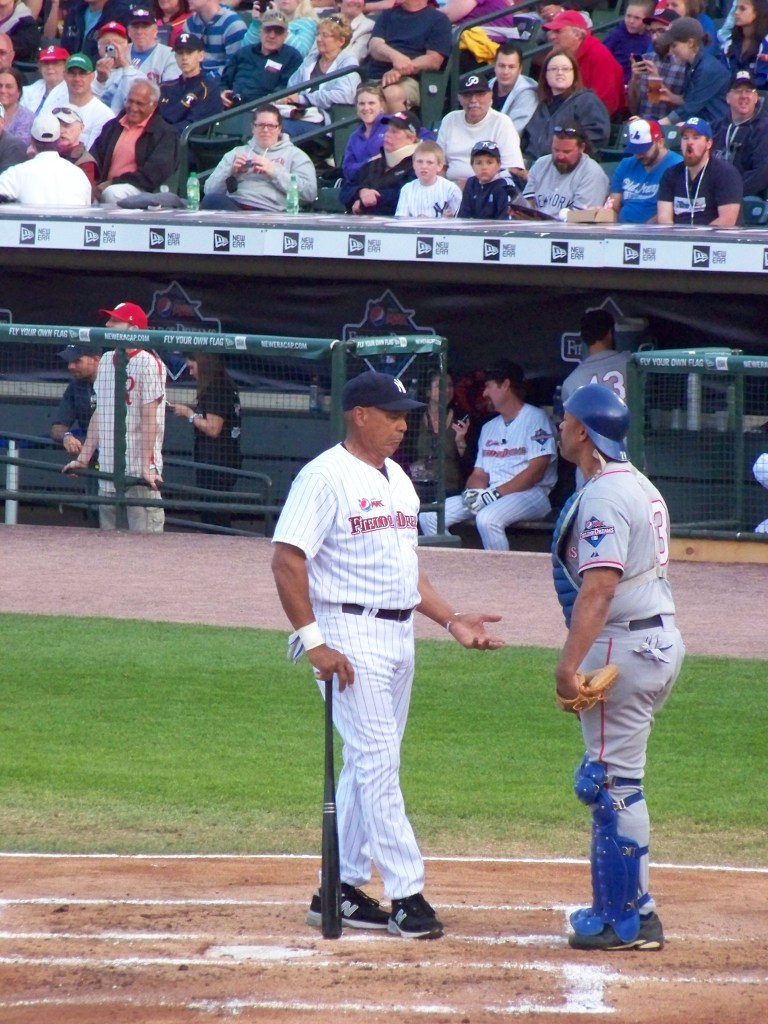 100_4992 Published May 19, 2013 at 2448 × 3264 in A Day With Legends: The 2013 Pepsi Max Field of Dreams Game Reggie Jackson discusses some things with the catcher.