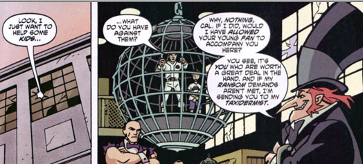 However, it should be noted that the idea of Cal Ripken getting a parade in his honor in Gotham is probably the most realistic thing in this comic. For, meanwhile, the Penguin has a fiendish plot in motion: