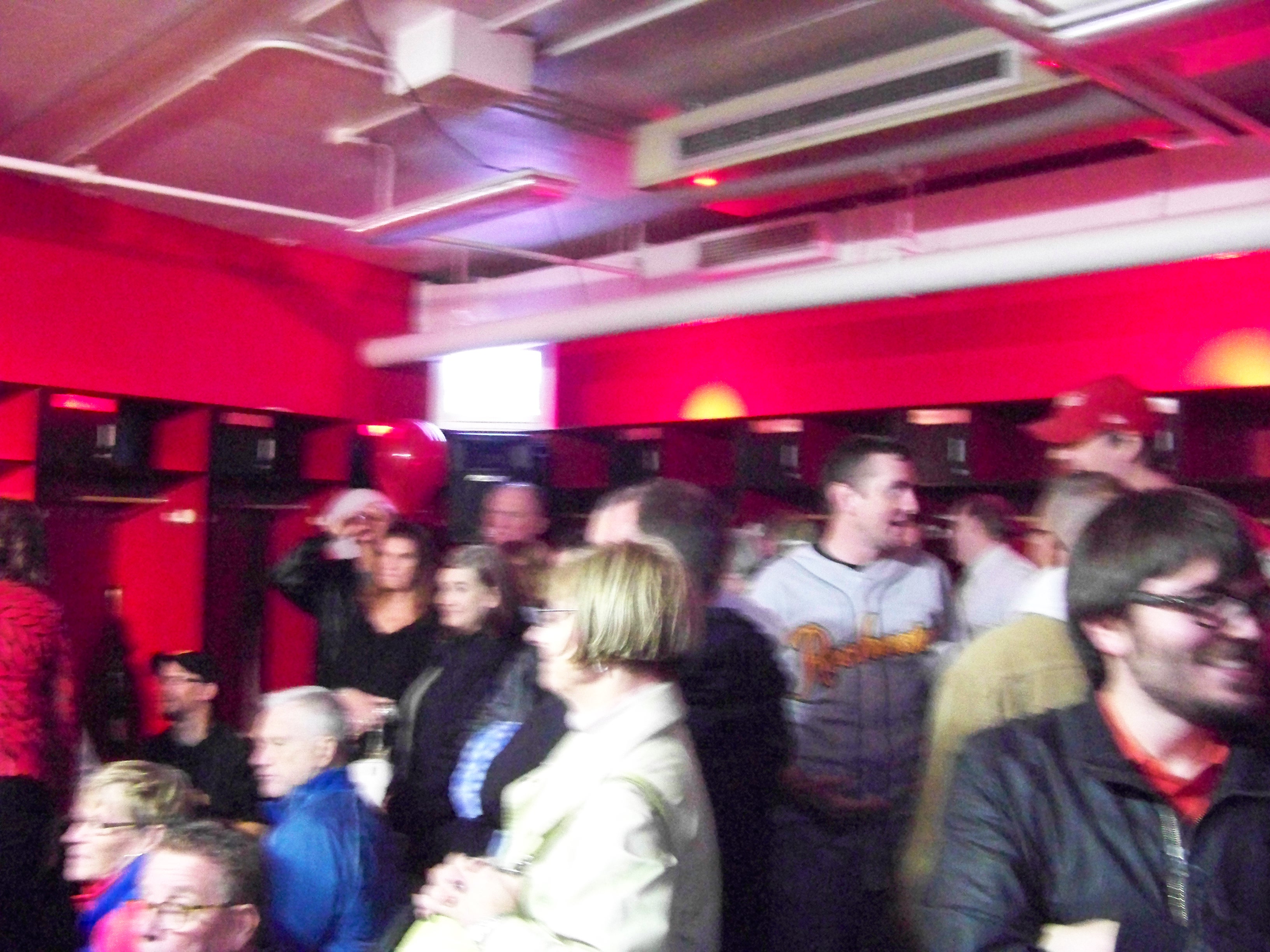 Of course, a simple news conference would have been boring. The Red Wings were smart enough to make it something of a show. Due to heavy winds, for example, the unveiling was done down in the Red Wings’ clubhouse, allowing for the very cool feeling of walking past photos on the walls of previous greats and letting you stop and look over motivational items, scouting reports and memorabilia that lined the walls. That said, it was a rather… tight fit: