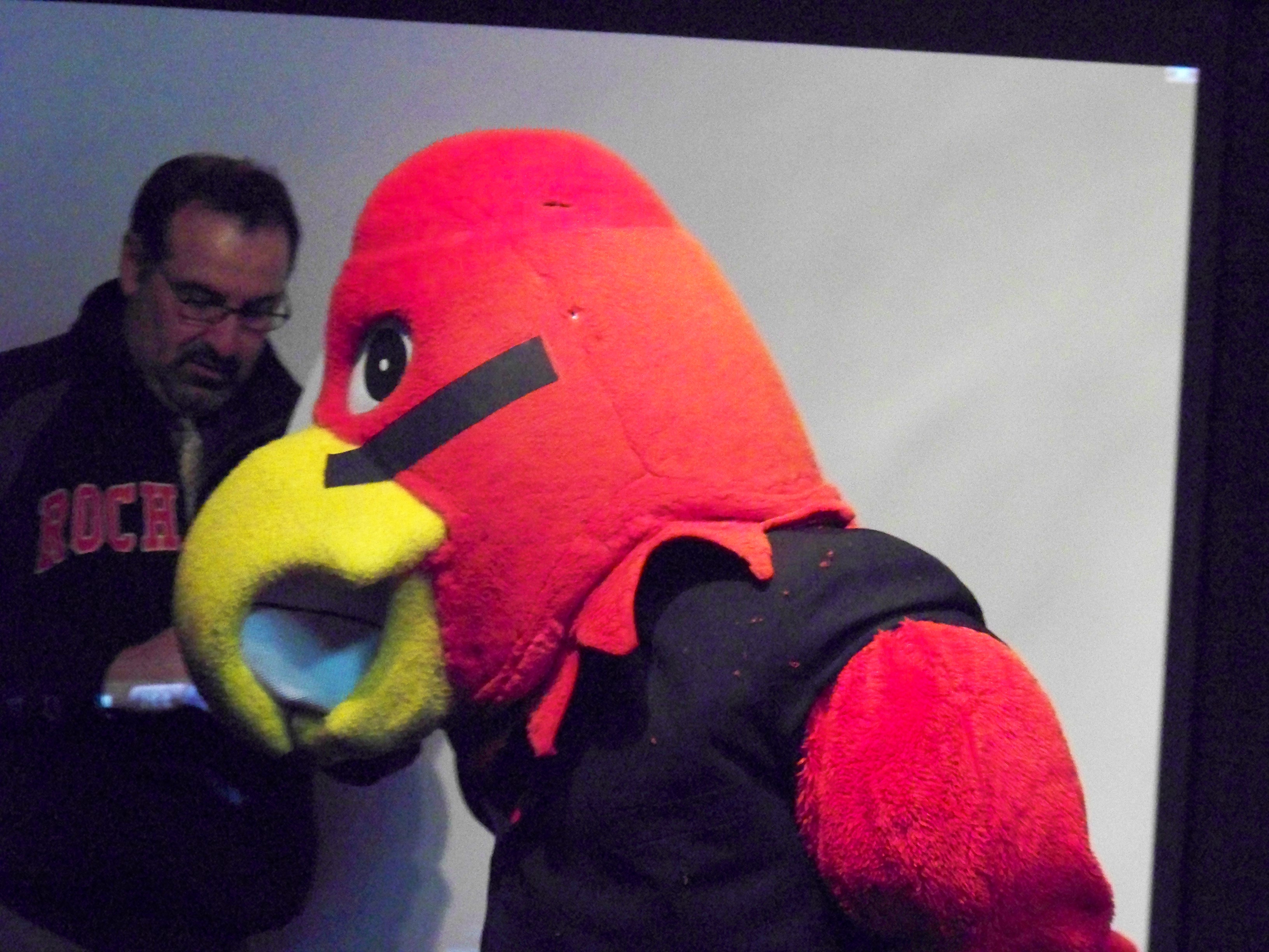 Today, I went up to Frontier Field to see the Rochester Red Wings unveil their new logo. They’d had their previous logo since the late ’90s, and I was curious to see what they’d do. Would they go retro and go fully to the ball-and-wings logo that they’d introduced as an alternate the past few years? Would it be something completely different, perhaps something with talons?