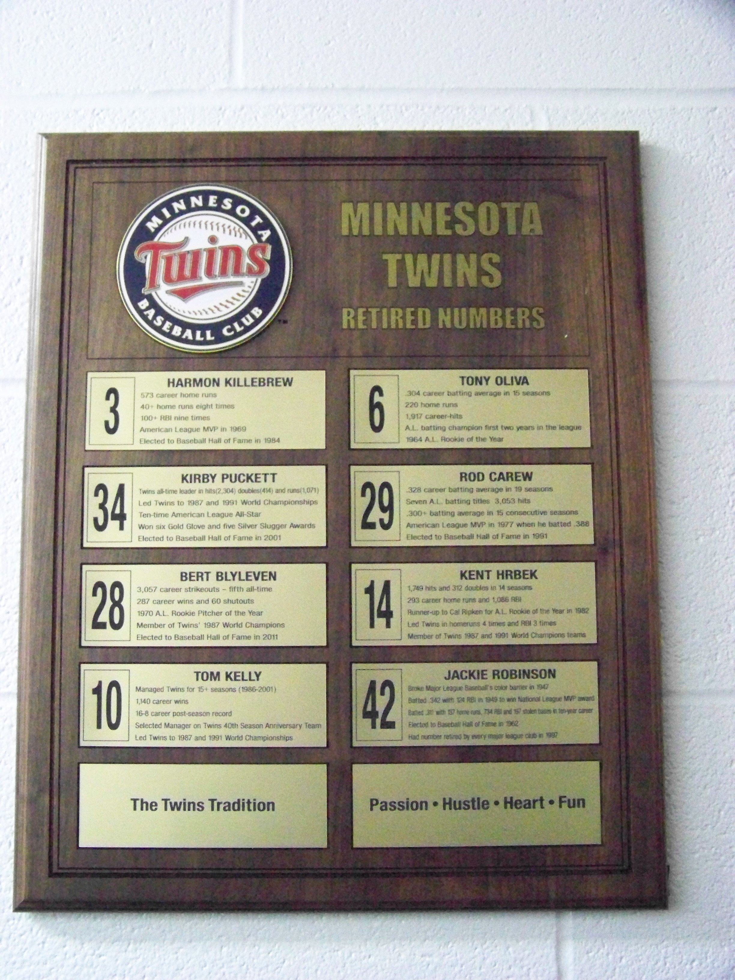 …a plaque of retired numbers in Minnesota, and another call of the Twins Tradition…