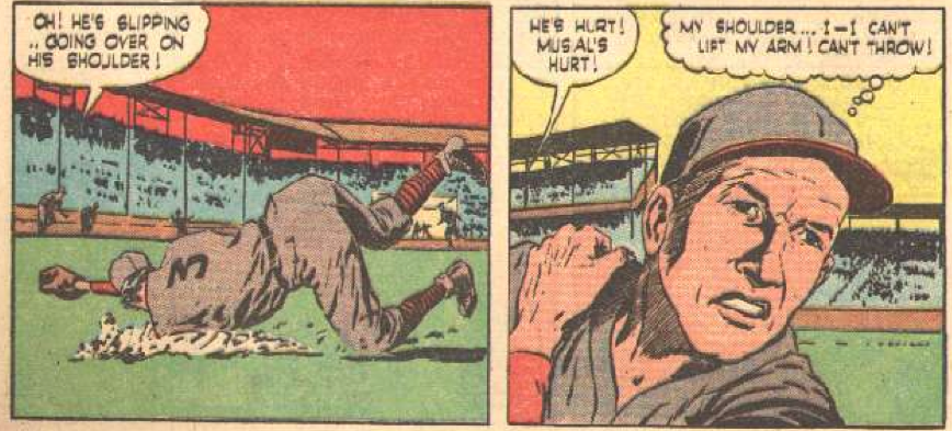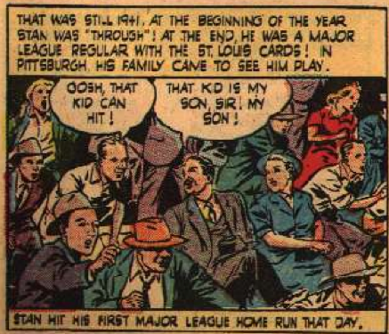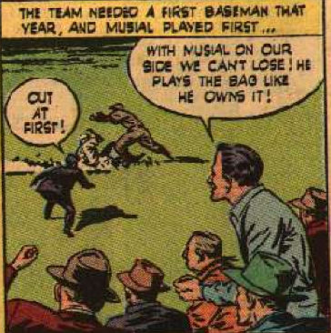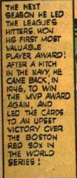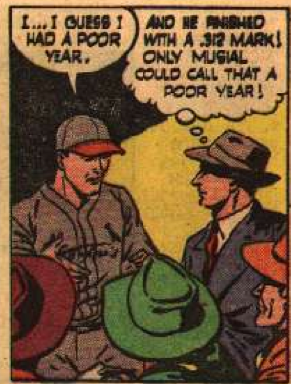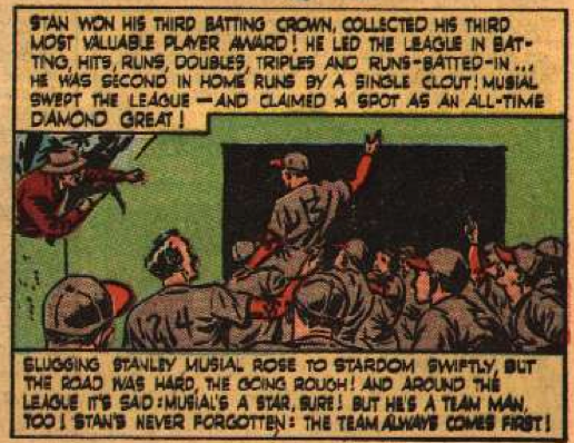 Musial then proceeds to, in his own words (his actual words were different, but go with me), have a crappy year. Well, a crappy year for him. He still hit .312. This is even made fun of in the comic itself.