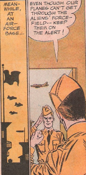 The invisible team strikes first. The leadoff man reaches on a single up the middle, then he gets to second when the next guy reaches base on a bunt single. The 3-hole drives the lead-off man home with a double, but then Clark is able to avoid further damage with a strikeout, a pop-out, and a grounder. The invisible men strand a man on third. Meanwhile, the Air Force is just kind of… sitting around.