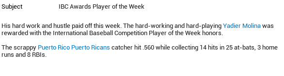 Lost in all the gaping at the Venezuela-Colombia game, Puerto Rico beat Italy 9-5 as Yadier Molina hit his third HR of the season, and Panama surprised Mexico, 6-3, behind three hits from Christian Bethancourt.