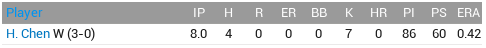 In Taiwan, the home team beat Panama 9-0, as Hung-Wen Chen won his second game of the season.