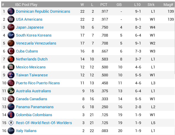 Next Time: Team USA faces Korea and Venezuela! Cuba faces Japan and the Dominican! Italy and Colombia have a meeting of two of the competition’s two worst teams! And, we’ll look at league leaders as the first month of the IBC comes to an end!