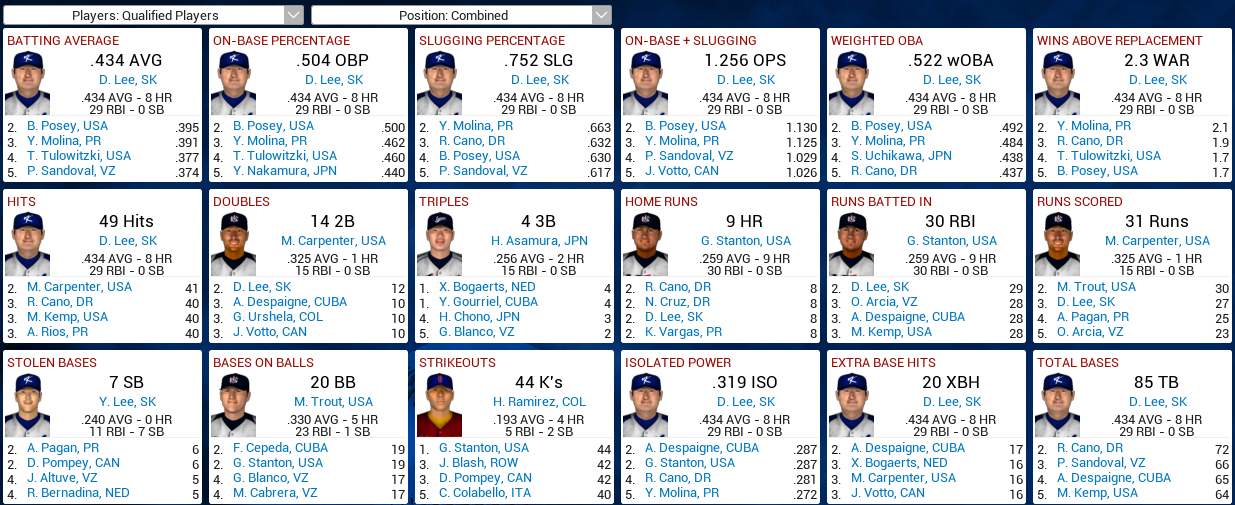 Throughout the year, I’ll be posting updates of a simulated league from Out Of The Park Baseball 2016 made up of national “dream teams” to determine what the greatest baseball country on Earth is… or something like that. Previous installments can be found here. This is a long post, so there is a JUMP after the first day. Also, hit any picture to make it bigger and more readable.