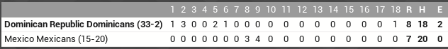 There was, of course, other action, as Taiwan edged out Canada 4-3 in 10 innings and Rest-Of-World beat Colombia 5-1. But the biggest game of the day actually turned out to be Dominican Republic at Mexico… in more ways than one: