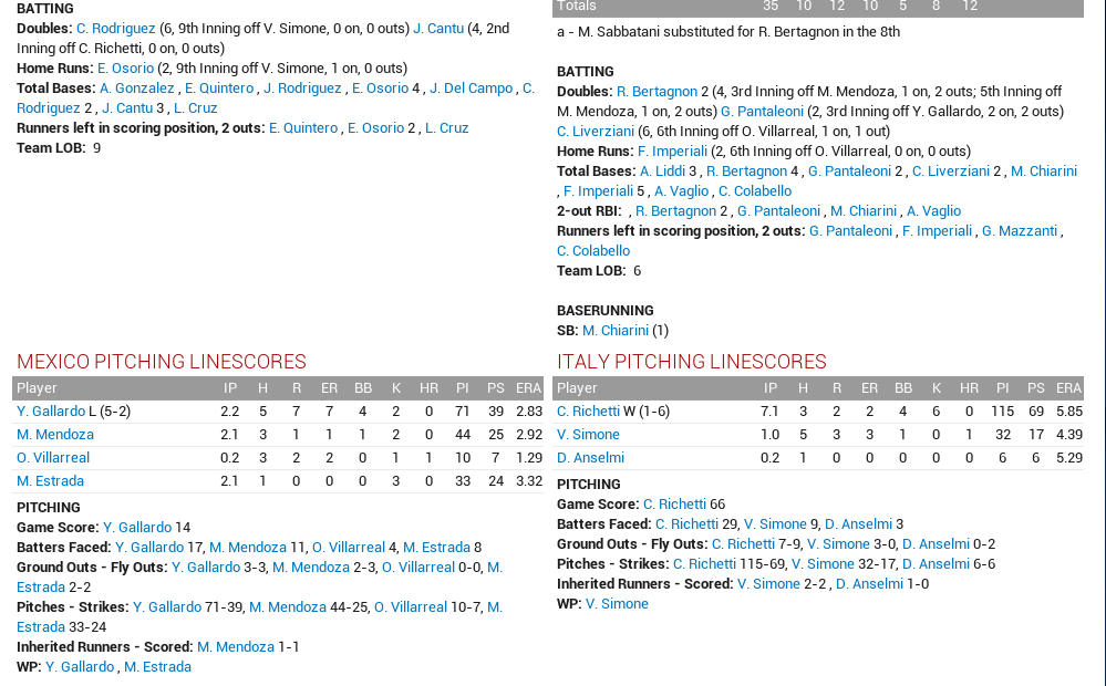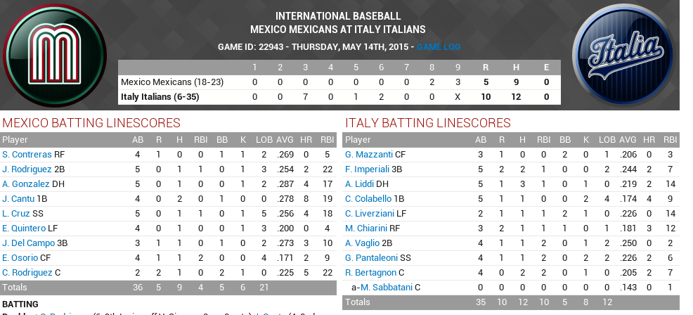 - The Italians beat Mexico, 10-5. No, seriously, and they were leading 10-0 at one point. Seriously, take a look at the box: