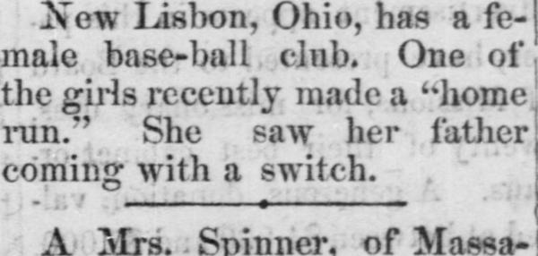 This was reprinted at least five more times, proving that back then, much like now, one sure way to go viral is to insult another sport (in this case croquet) and to write about women playing sports (sadly, the writer back then who was encouraging women to play baseball is arguably more progressive than some writers today). That writer was also probably more progressive than the father in this snippet from a 1870 Fayetteville Observer, reprinted at least seven other times: