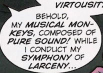 They fly to a local theater, where the Scatman and his MUSICAL MONKEYS are preparing to loot some concertgoers. Only this time, he calls them POLYPHONIC PRIMATES!