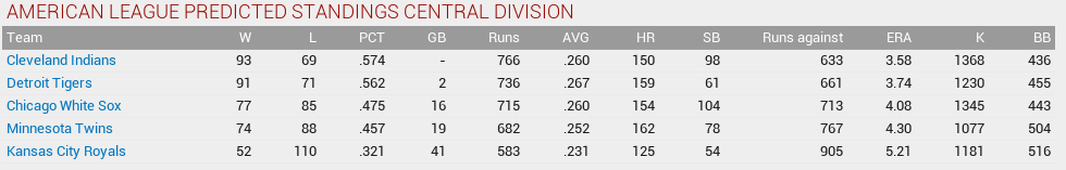 Yes, Phyllis, your 2016 Kansas City Royals (playing with something close to 1944 ethnic makeup) are predicted to go 52-110! Wooo!