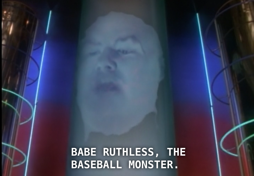 When did Babe Ruthless show up? I don’t know, but when the giant floating godhead says that “Babe Ruthless, The Baseball Monster” has been sent down… YOU LISTEN.
