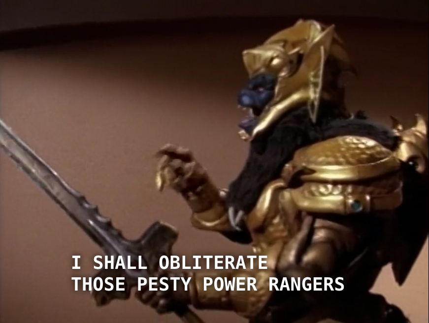 By the way, one thing that always differentiated Power Rangers from other giant-monster franchises is that the monsters would talk. You never heard Godzilla talk.