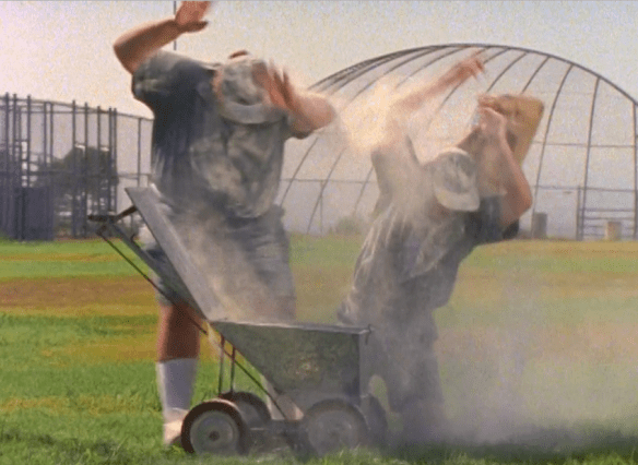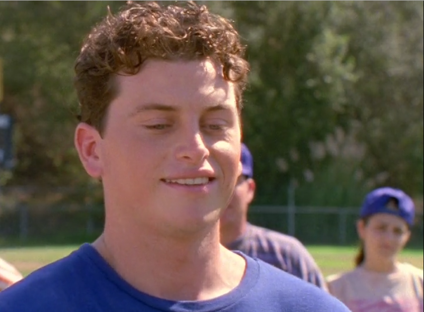 It is after the home run that a new kid arrives to play for the Rangers’ blue-capped opponents. His name is Heath. The immediate impression of him is that he’s a dick. I mean, he doesn’t even shake hands, he just gives a sarcastic “I heard you were good” and then hands the ball all challenge-like to T.J. He then insults the rest of T.J.’s “sorry team” and laughs bully-like with the rest of his team. And… well… look at him: