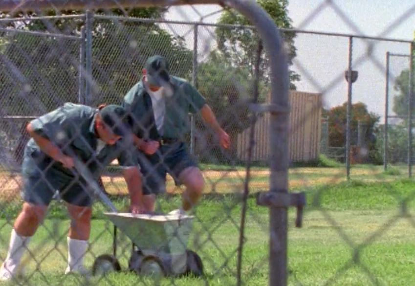 Anyway, after some trash talk from the blue-hats and T.J. declaring he will figure out how to hit that pitch, we cut to Bulk and Skull- who honestly are the best characters in this damn franchise- doing groundskeeping duties: