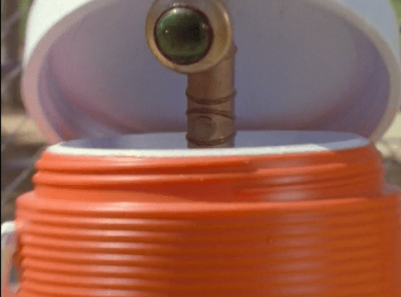 BUT WAIT! Watching all of this is a PERISCOPE COMING OUT OF A GATORADE WATER COOLER: