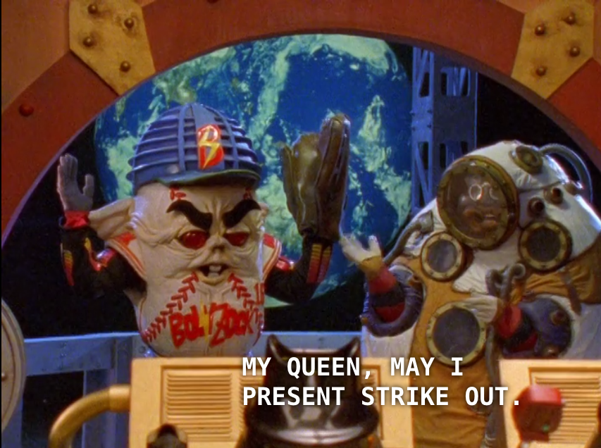We now come to that point in every Power Rangers episode involving baseball where they start doing baseball phrases:
