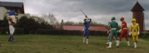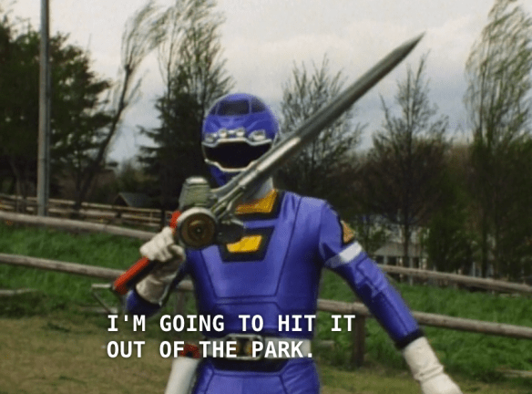 Now, you can clearly tell that this was footage originally shot in Japan for the Sentai show. Why? Because the Blue Ranger’s batting stance is incredibly Japanese: