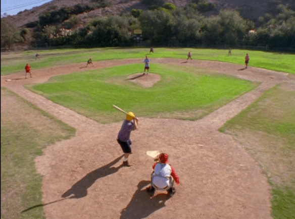 After the commercial, Heath repays T.J.’s kindness by teaching him how to hit his curveball. In essence, Heath gives away that he tips where he is throwing the ball based on his arm and wrist movements and the like, which sounds just plausible enough to not sound like total BS but also isn’t exactly something that should automatically make T.J. a curve-hitting machine. I mean, there isn’t some sort of mantra you can put in your head and then all the sudden you are on a cheat code that causes you to hit curveballs. Heck, it could hurt you. I remember reading stories about how catchers would sometimes mess with Tony Gwynn by telling him exactly what was about to be thrown, but it would mess up Tony because he’d be thinking about it too much instead of going with his instincts.