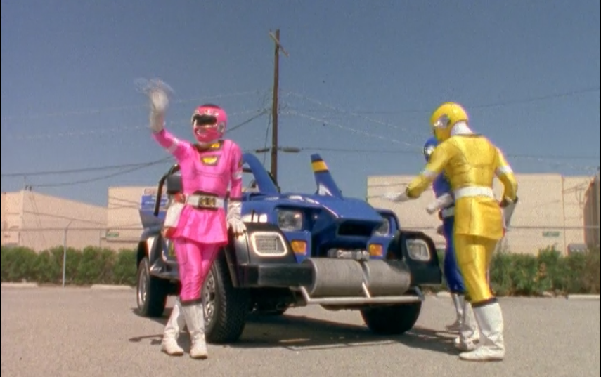 Anyway, it turns out that the other Rangers are getting attacked by Rygog and Piranahtrons. Rygog is Divatox’s second-in-command, while the Piranahtrons are this year’s cannon-fodder henchmen. After a brief and generally underwhelming fight, Rygog runs off while doing the standard “You haven’t seen the last of me!” cry. It turns out they were after Storm Blaster, the blue sentient alien car that hangs out with the Rangers. Yes, that is a actual sentence I just typed, and I think my IQ just dropped 10 points typing it.