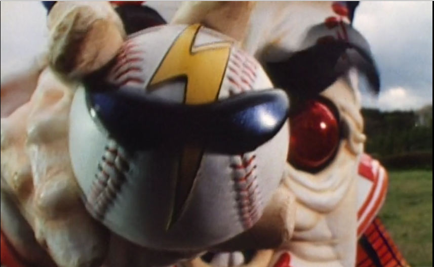 Strike Out then declares he’ll throw something easier. Why? Because reasons. The Red Ranger (now inexplicably right-handed) hits it right back at Strike Out, seemingly knocking him back. This is just a temporary victory, though, as Strike Out then takes out the rangers with a flurry of fiery curves. The only reason he can’t finish them off is that he runs out of baseballs. That is one of the issues of using exploding baseballs as your weapon, isn’t it?