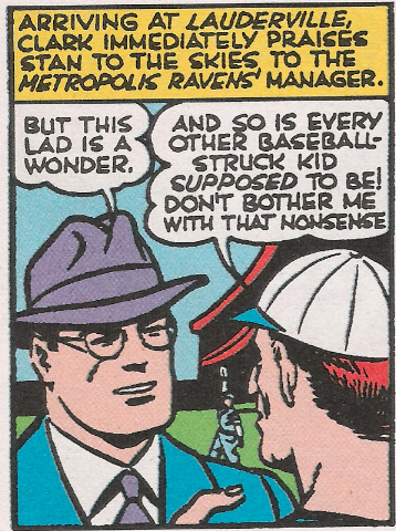 Anyway, faced with saying no to a god-on-Earth, Stan decides that, yeah, he’ll be a ballplayer. So Superman commits his act of douchery number six: sneaking Stan into the stadium and stealing a uniform for him to try and get on the field.