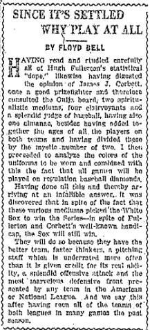 Those are just samples. Now, to be sure, plenty of people picked the Reds. But more people seemed sure of the White Sox- both sportswriters of the day and the odds-makers.