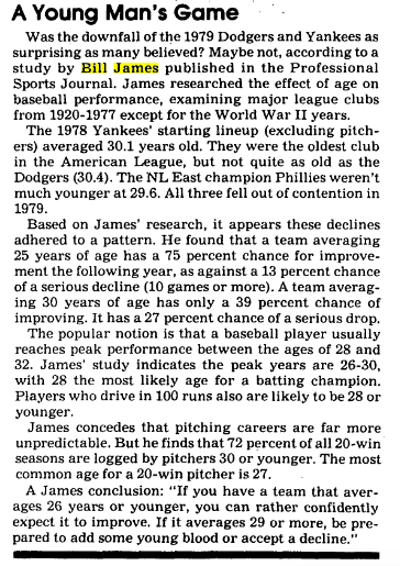 However, James’ first appearance in a print story seems to be in this November 10, 1979 snippet about the fall of the ’79 Dodggers and Yankees: