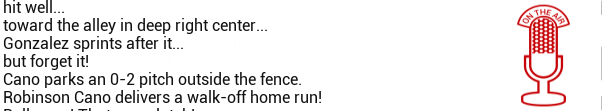 And then, the craziness continued. Cano reached on an Asdrubal Cabrera E6, and then, up came Big Papi, David Ortiz. Pedro Martinez started talking about how clutch he was, and then, Ortiz proved it: